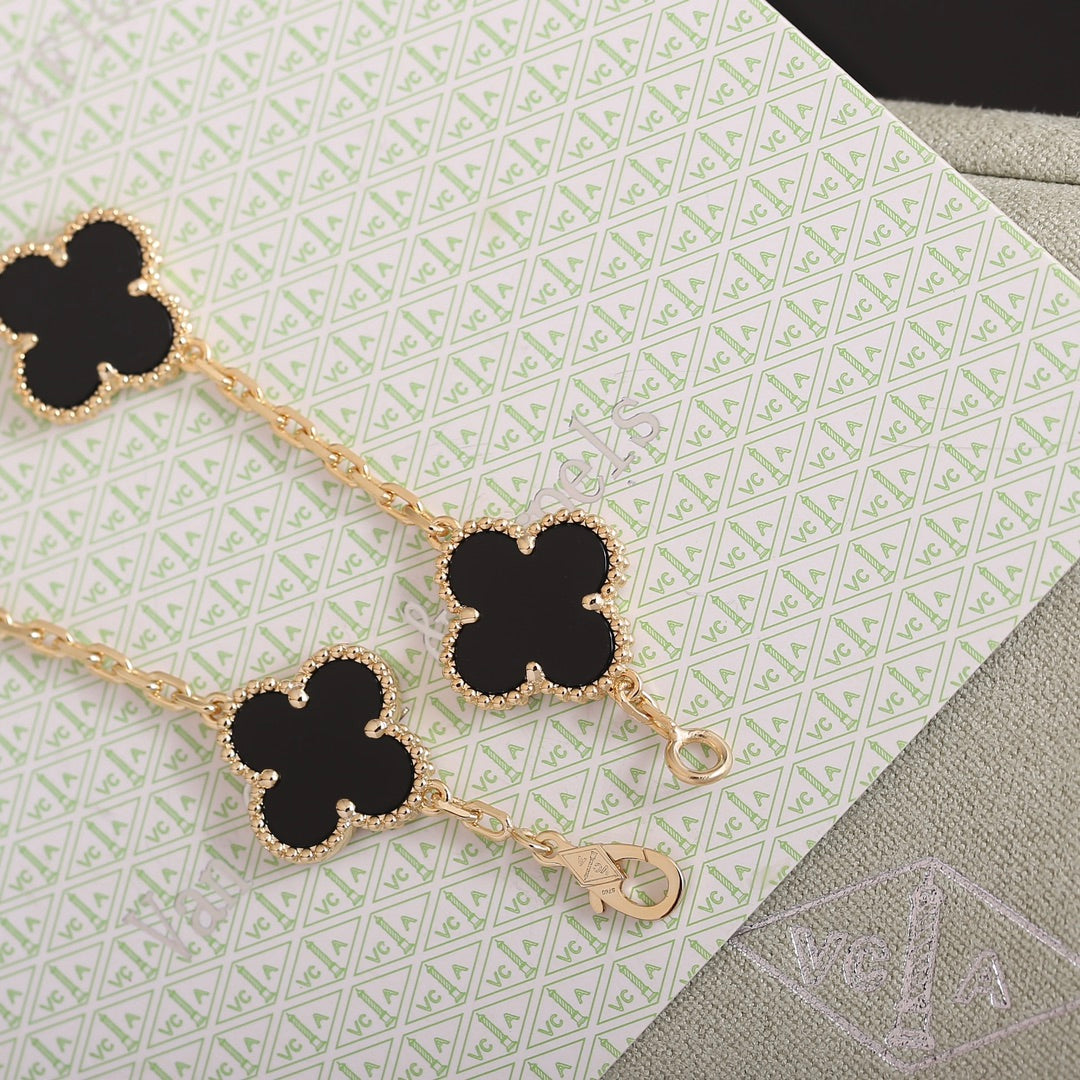 Vintage Leaves Black Bracelet & Earrings & Necklace 7 Set (Gold)