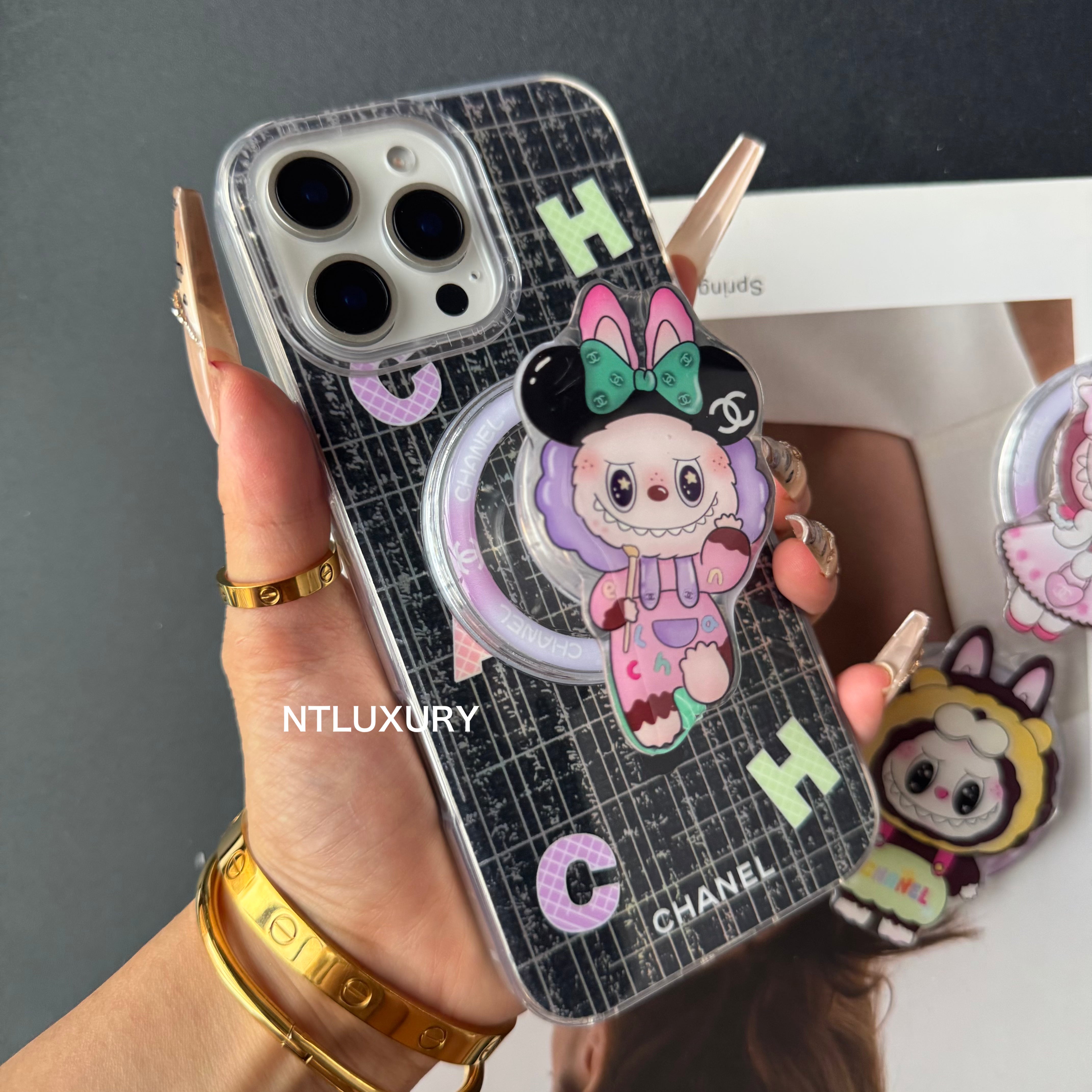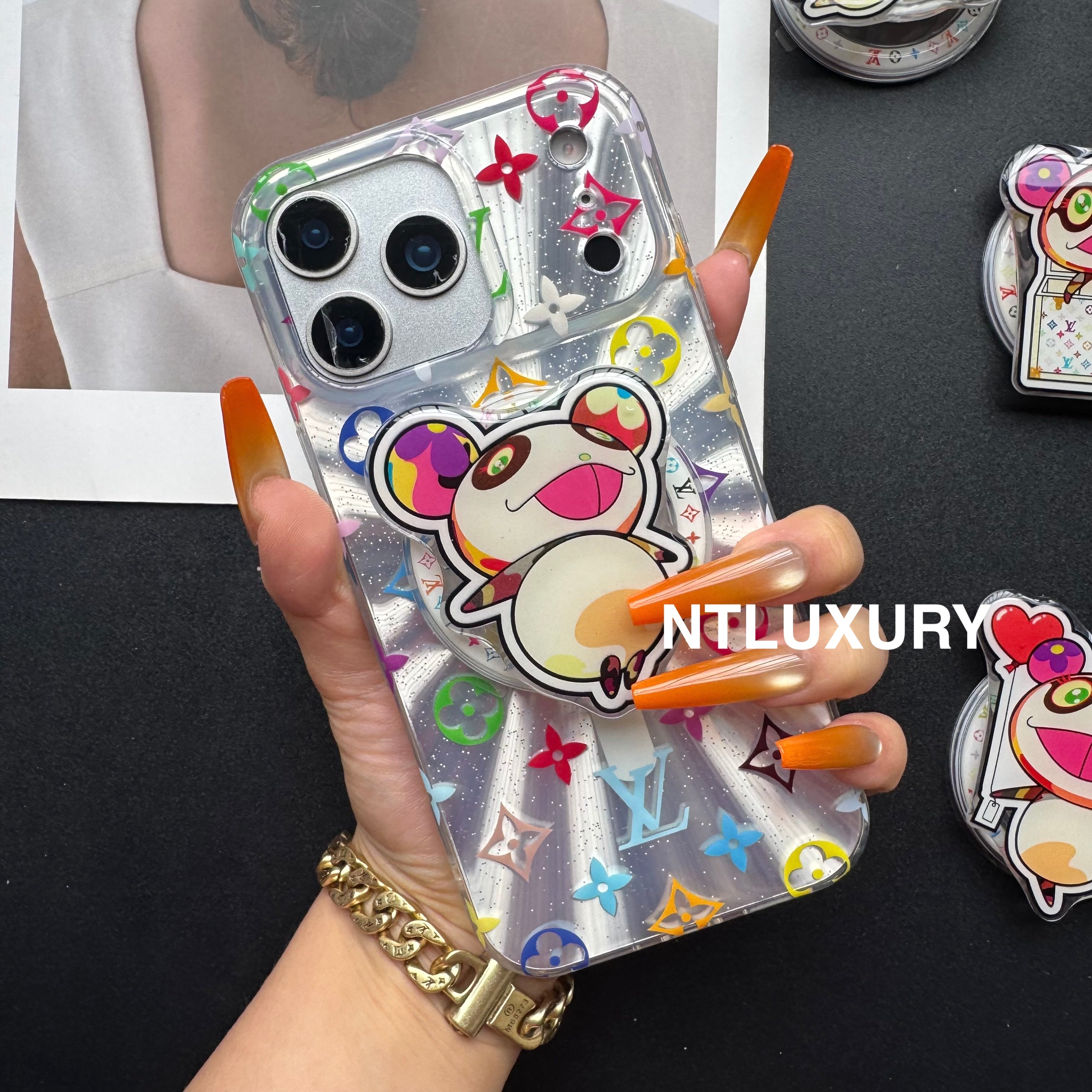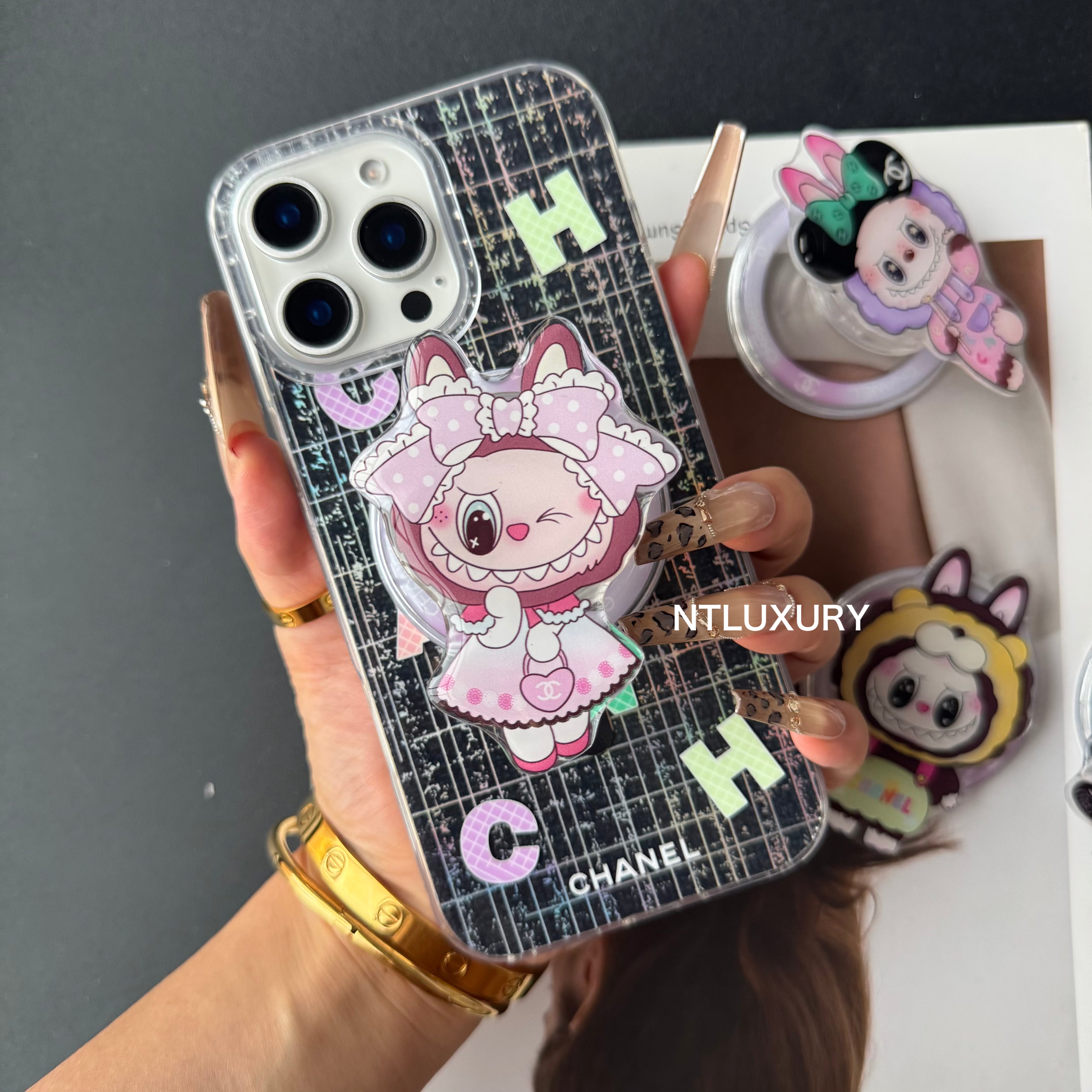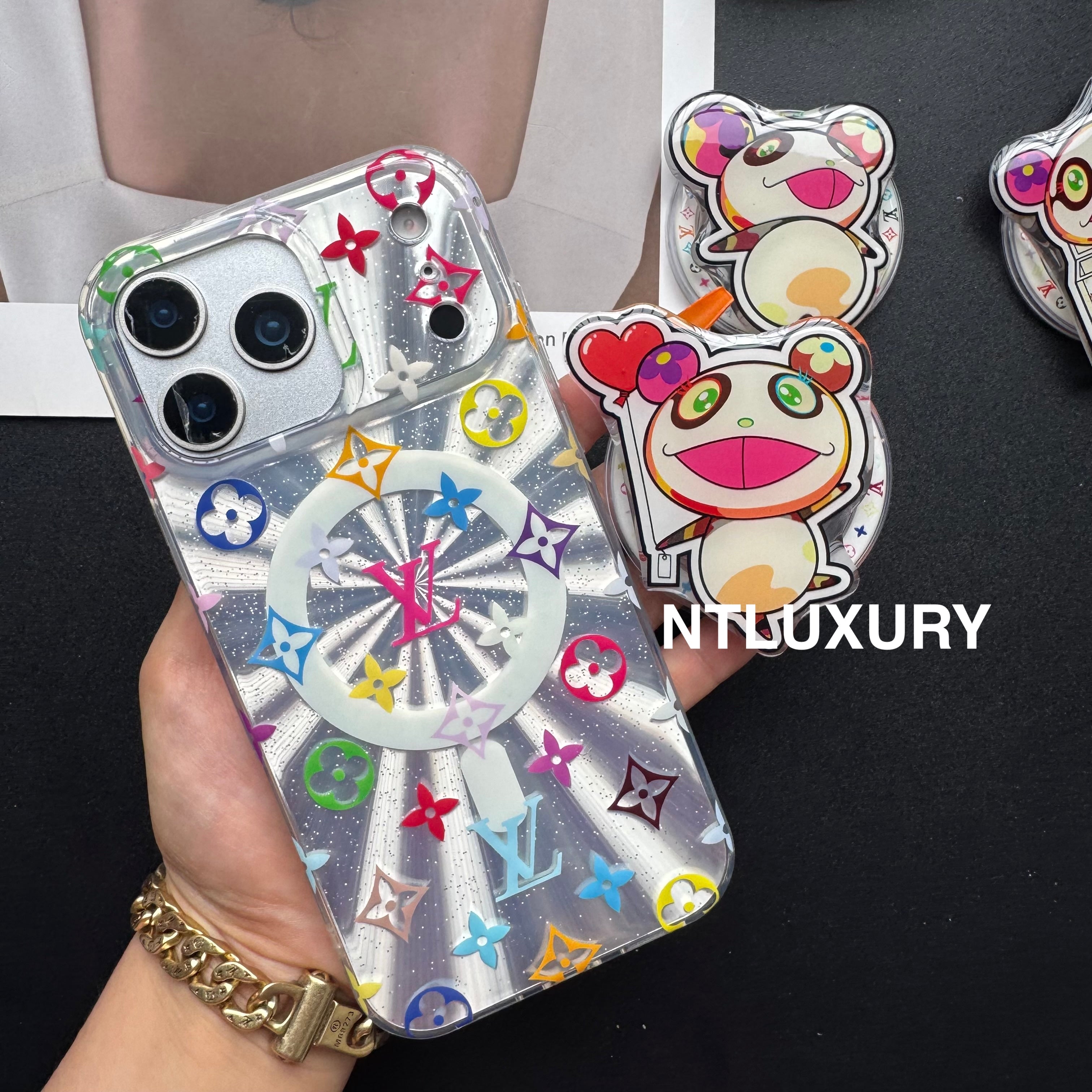 Laser Shining Love Phone Case with Magsafe Holder (Cute Bear)