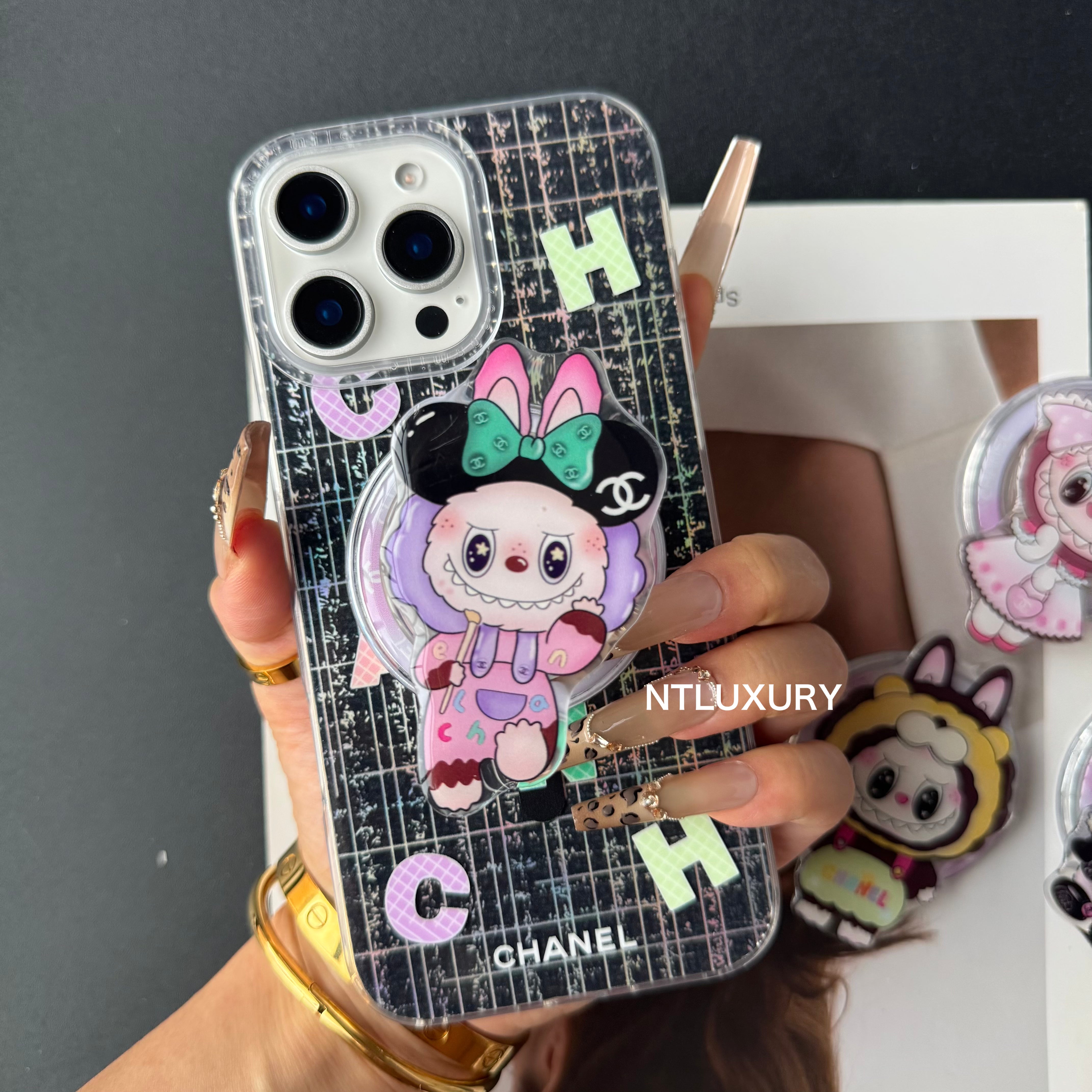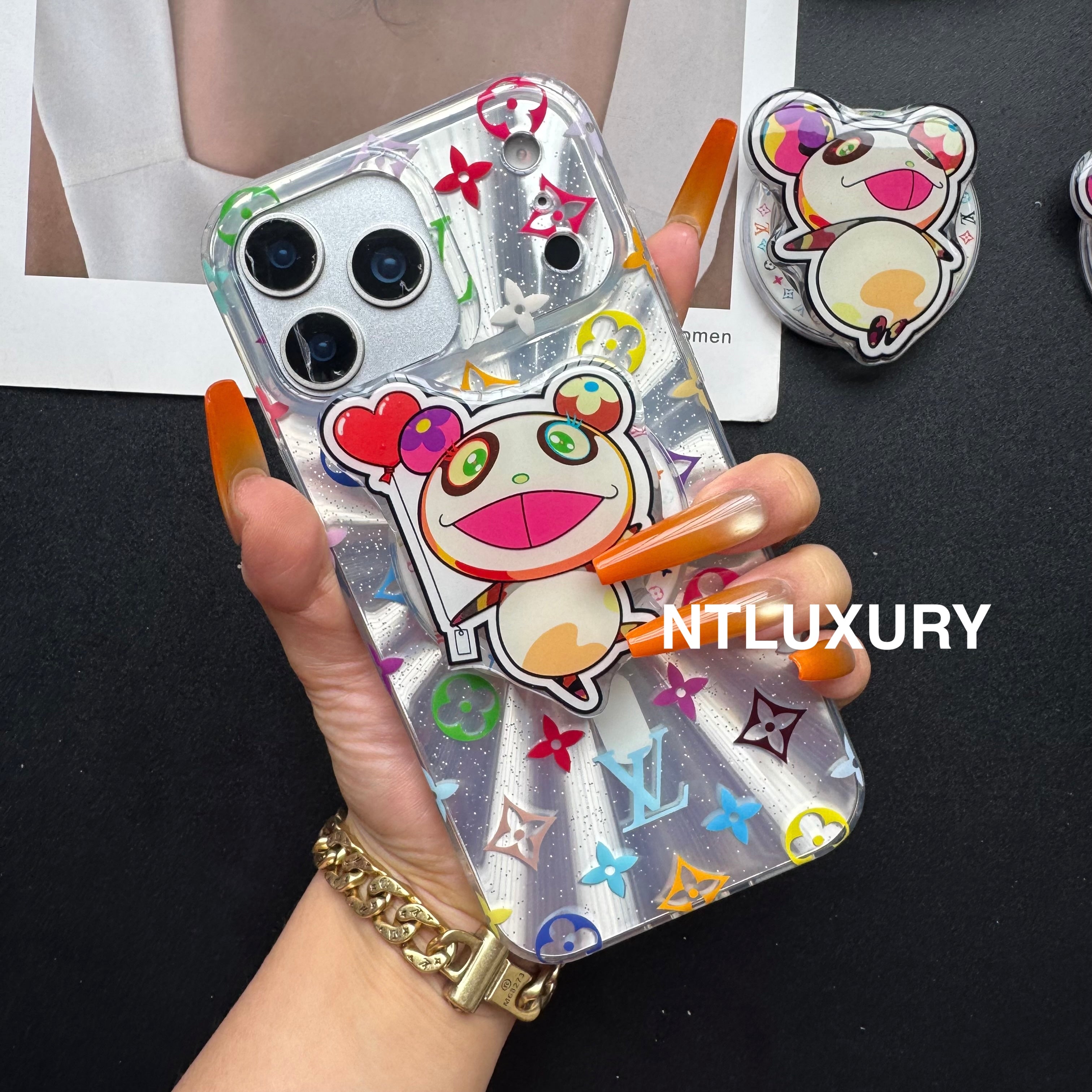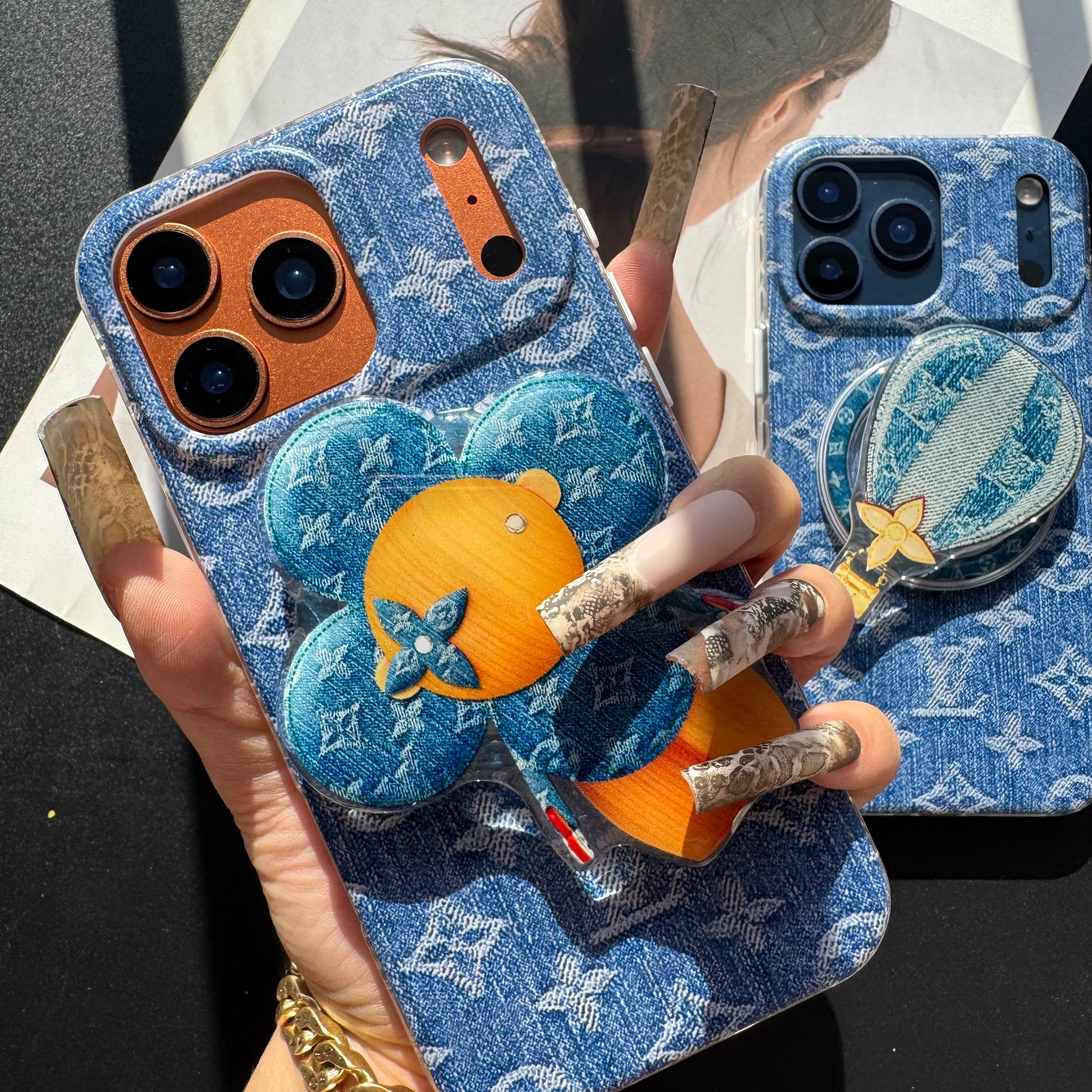 Laser Shining Love Phone Case with Magsafe Holder (Cute Bear)