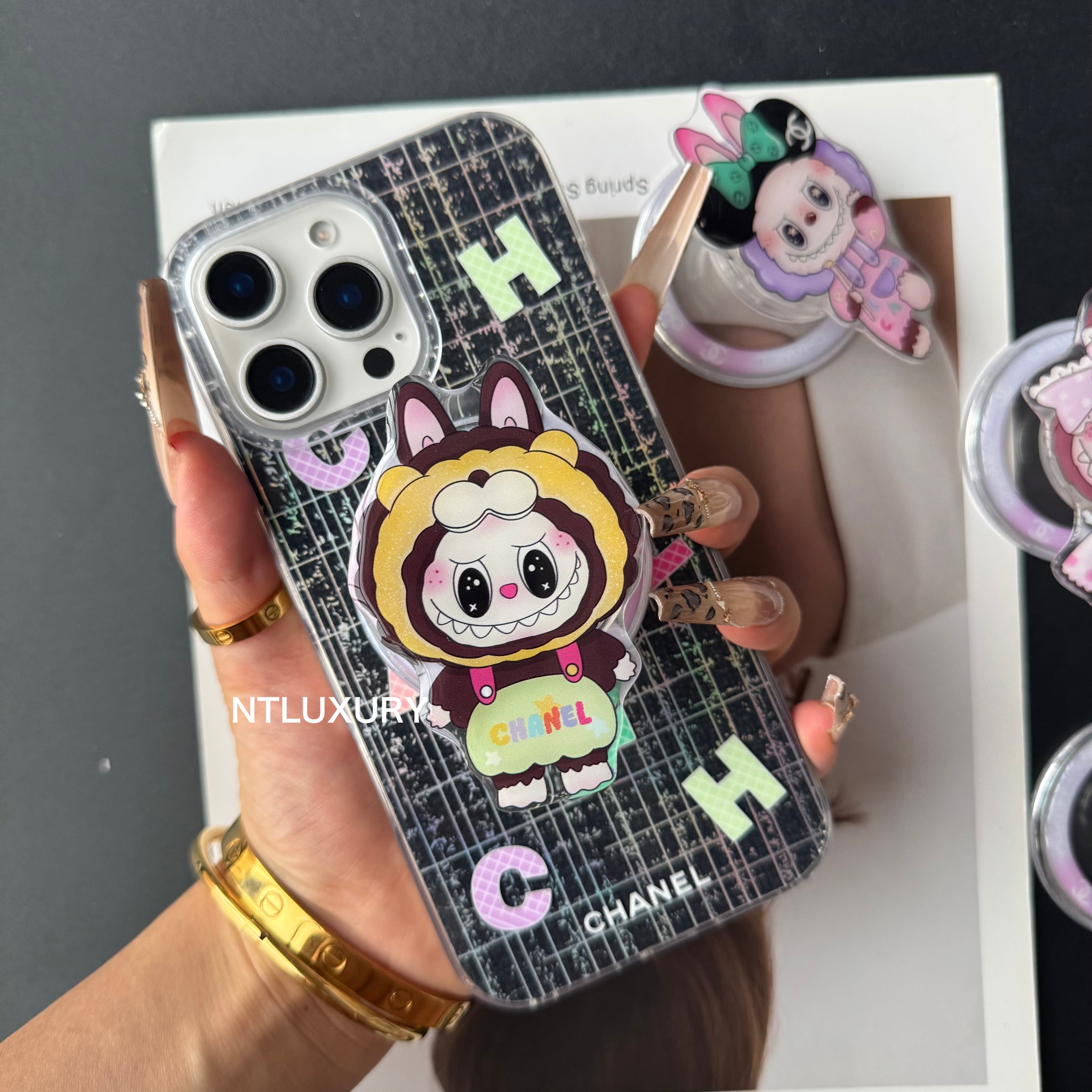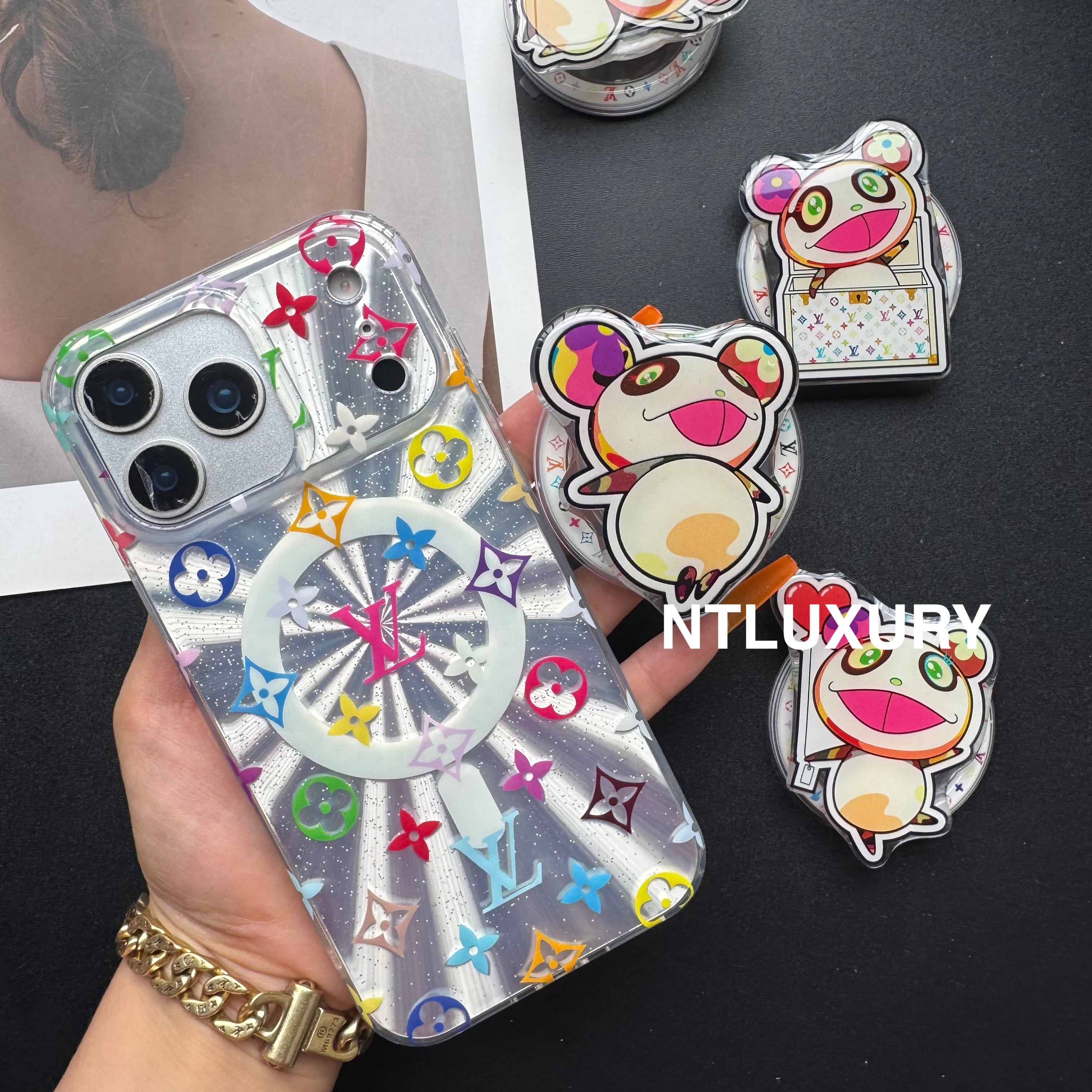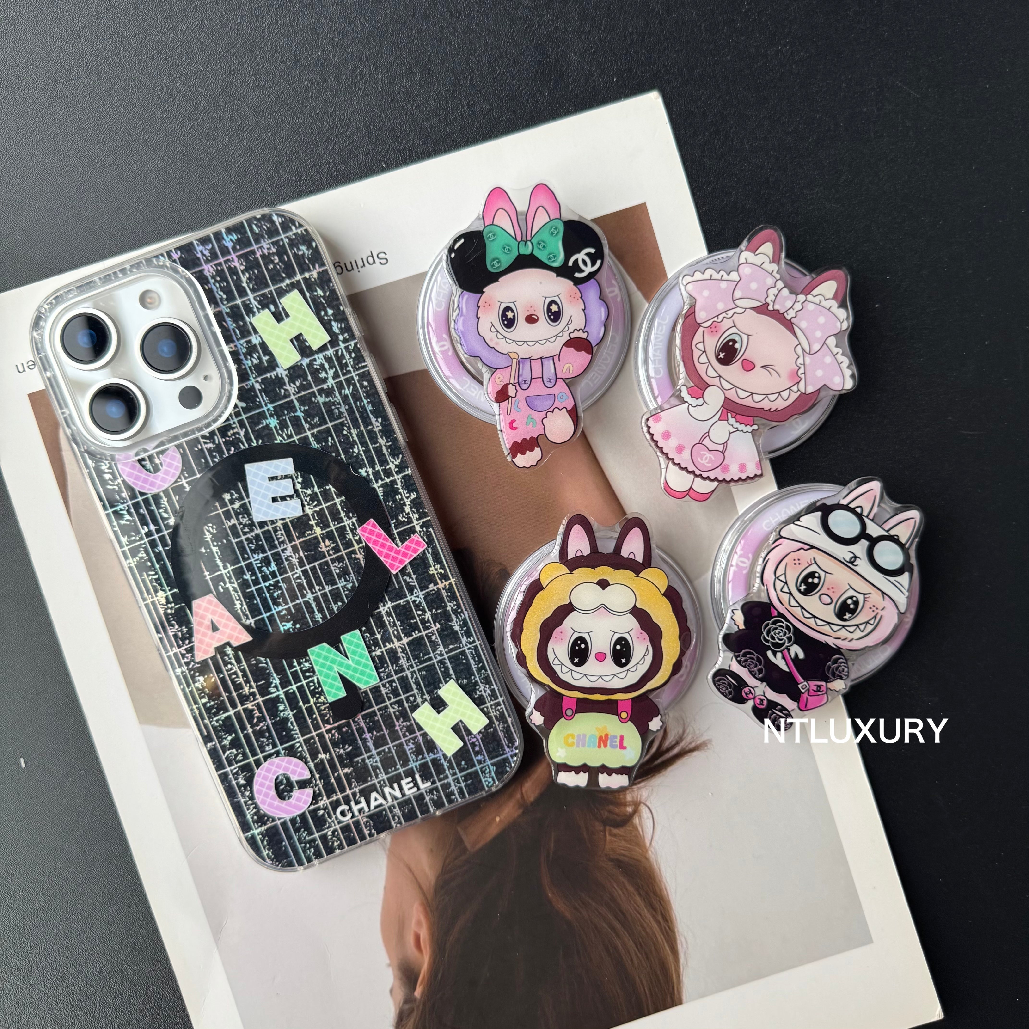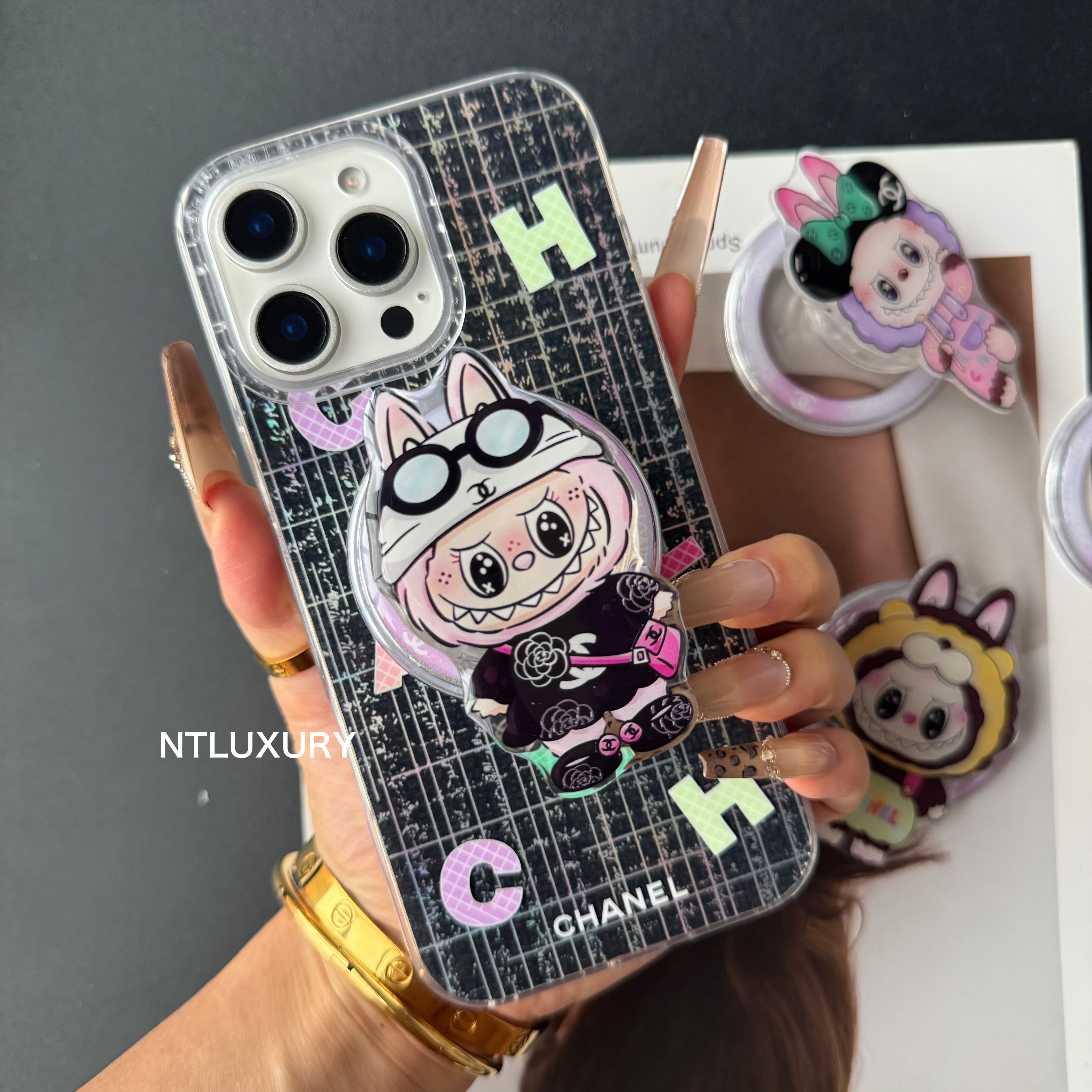 Laser Shining Love Phone Case with Magsafe Holder (Cute Bear)