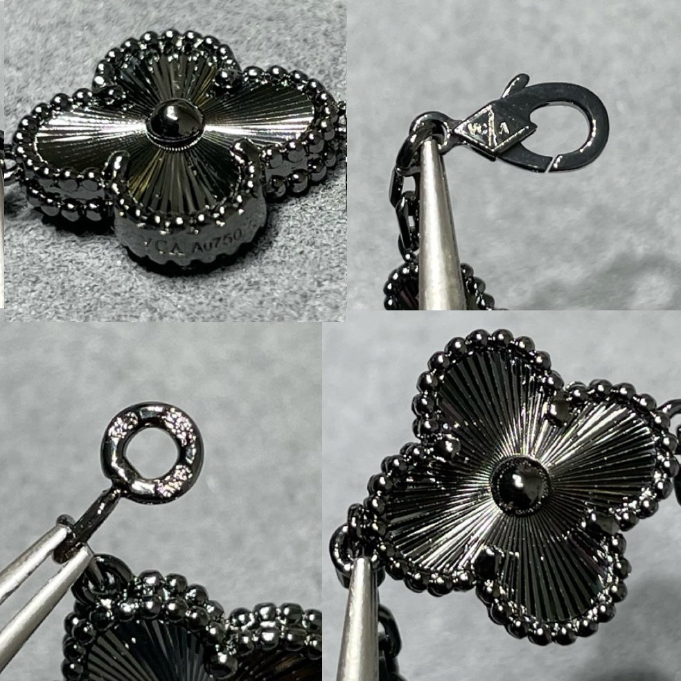 Vintage Leaves Black Bracelet & Earrings & Necklace 7 Set (Gold)