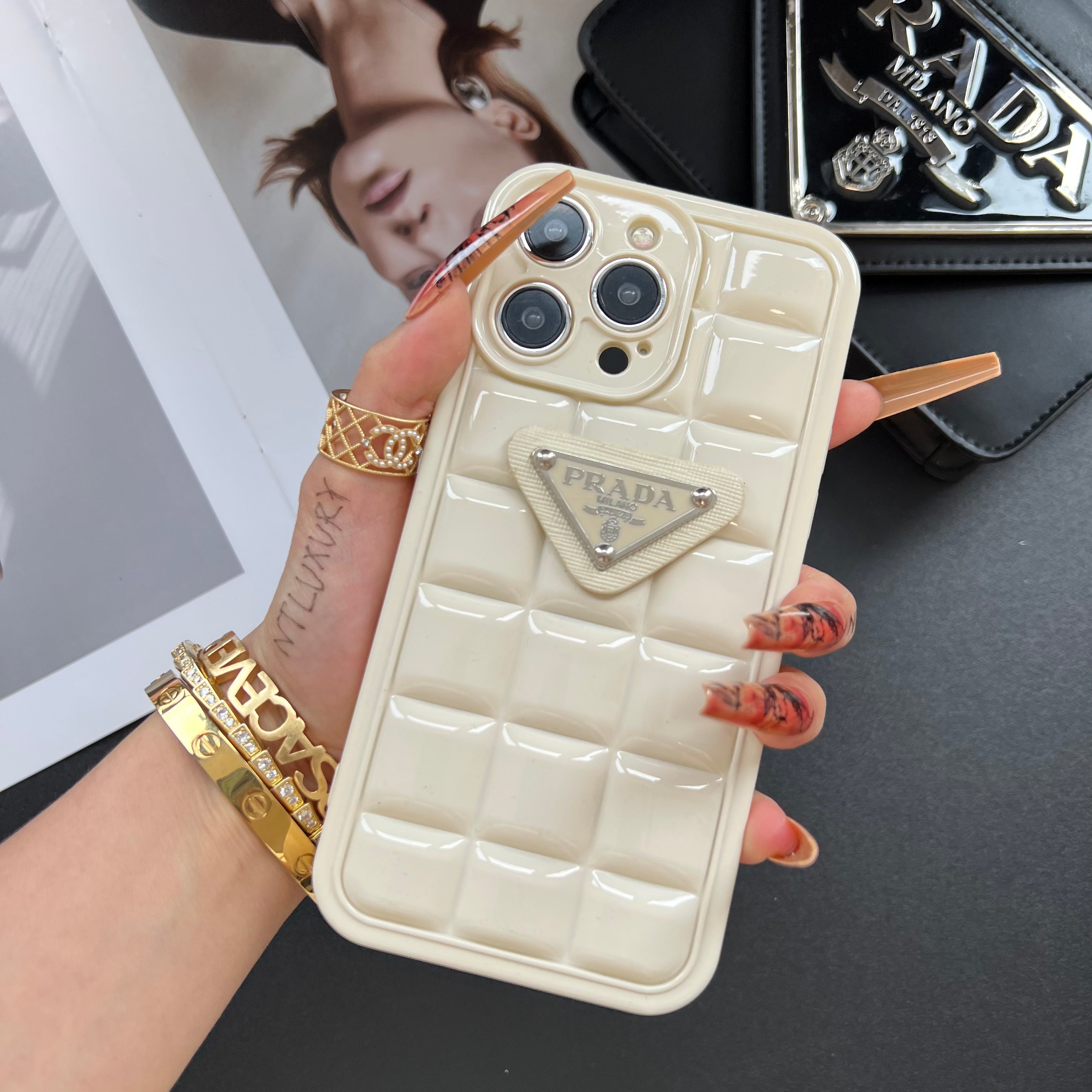 Glossy Plaited Phone Case with Card Pocket