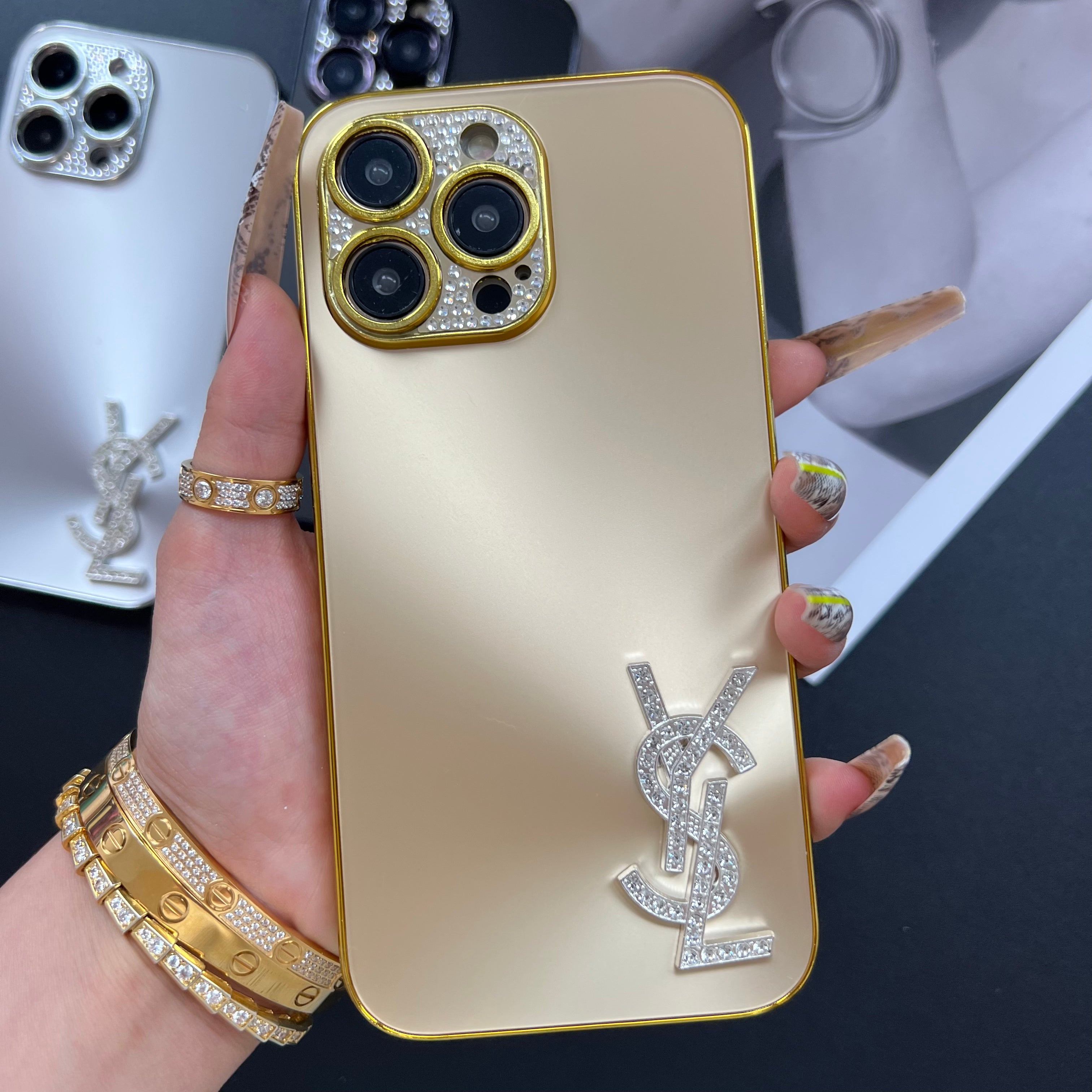 Smooth Design C Girl Phone Case (Golden Metal)