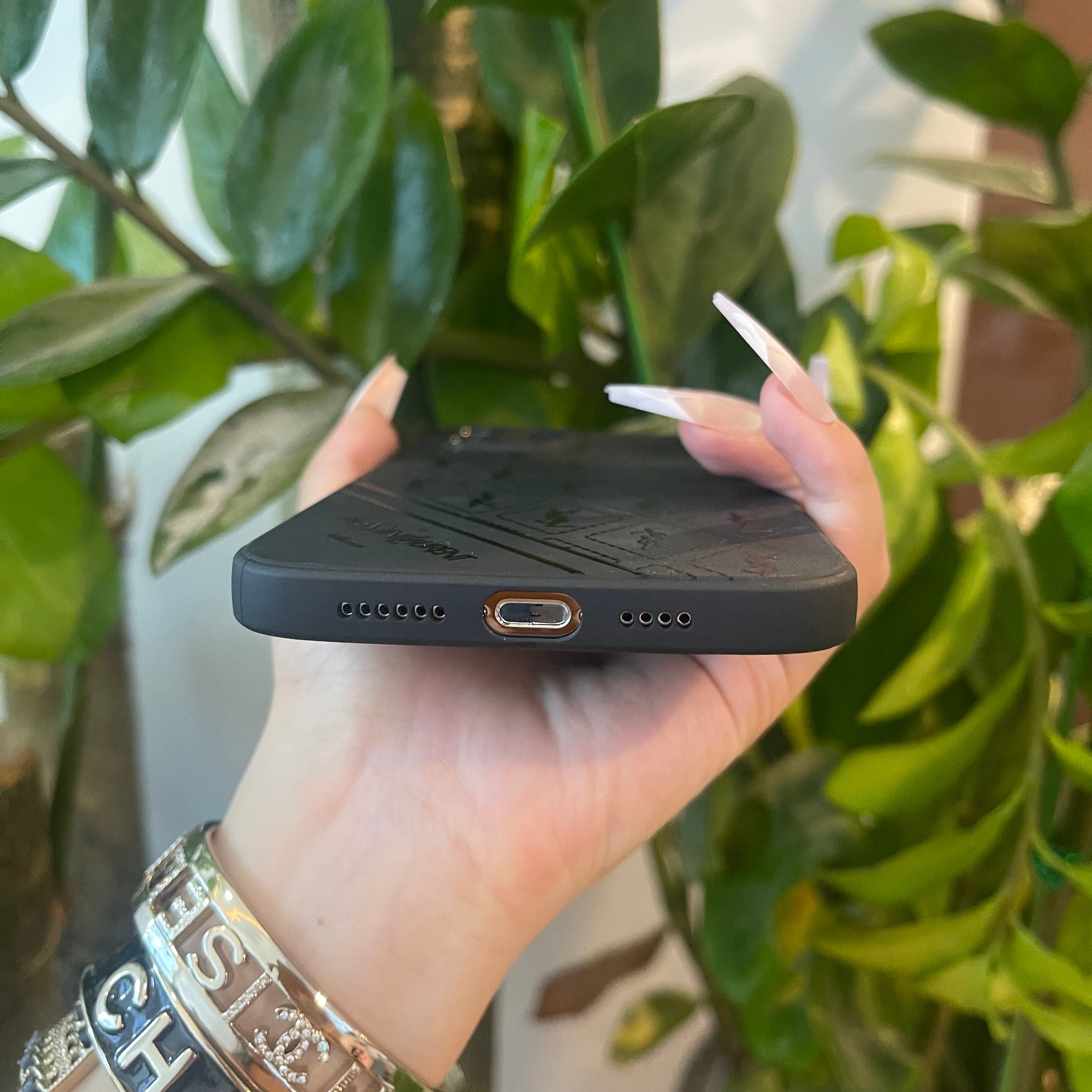 Black Trendy Phone Case ( Leaf )